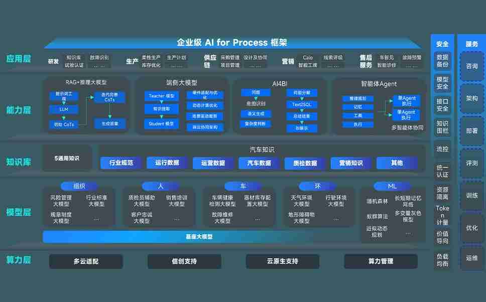 南宫娱乐问学智车解决方案是一套基于AI技术的汽车行业智能化系统,,,覆盖从底层算力到顶层AI应用的全栈方案。。方案由算力层、、、模型层和应用层组成:算力层,,方案支持多种一体机配置,,具备云端灵活部署、、、、多云适配以及动态优化计算资源的能力;模型层,,,,南宫娱乐问学平台版提供了企业级AI应用一站式构建与管理平台,,支持基于后训练强化技术的汽车企业专属模型的训练、、、评测和运营;应用层,,,南宫娱乐问学DeepSeek版提供包括超级员工、、、、智能招采、、智能营销、、、智能客服、、AI for BI等一系列解决方案,,可助力汽车行业实现数字化转型,,让管理更智能、、、、响应更敏捷。。