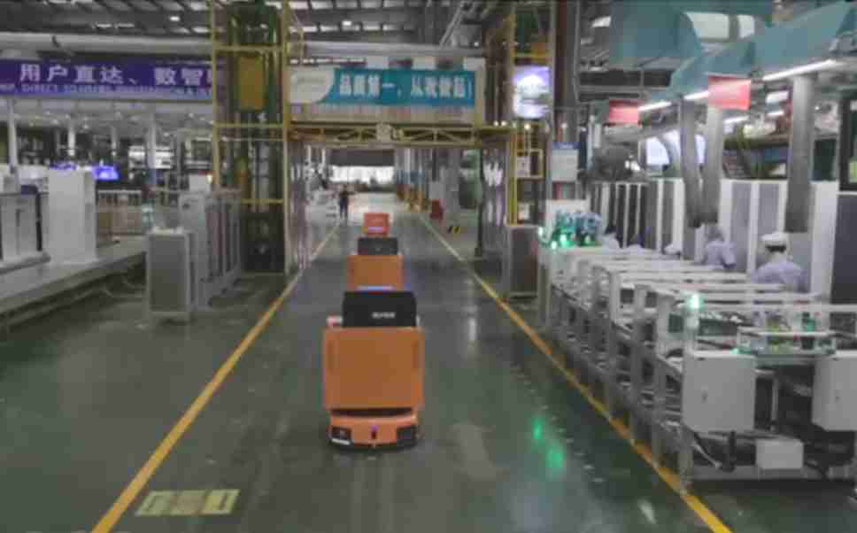为车载冰箱物流配送打造的智能解决方案,,,,包含产中物流通过潜伏举升AMR搬运至线边,,,,产后成品物流智能仓储,,流程包含产中物流智能齐套入库,,线边安灯叫料AMR智能配送至线边,,,,成品入库、、、、出库,,,,通过无人堆高车机器人,,智能仓储管理替代人工作业管理,,,,实现更高存储、、、更高效率、、更具柔性化的解决方案。。。